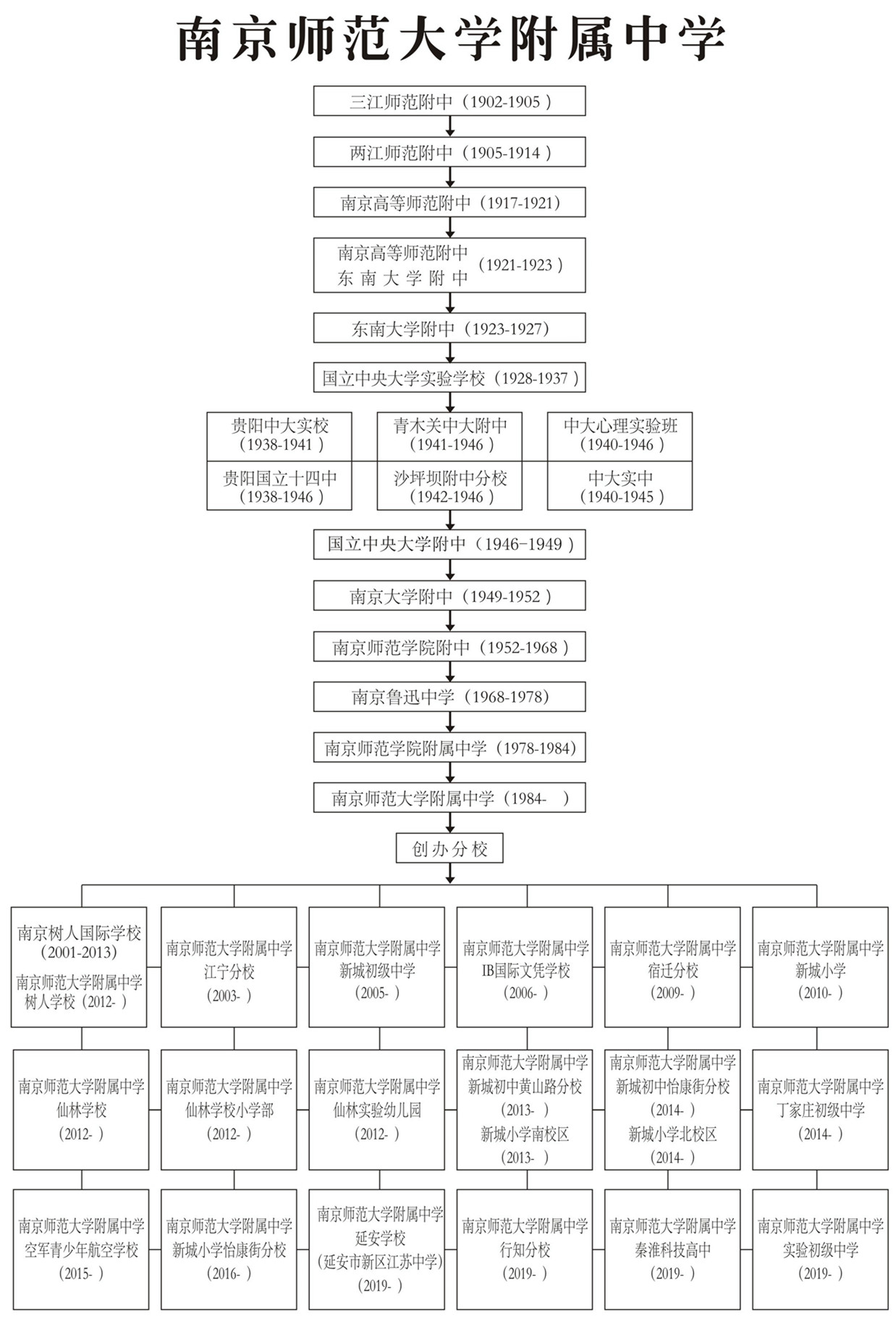 南京师范大学附属中学(简称“南师附中”)建校于1902年,自清朝两江总督张之洞奏设三江师范学堂并设附属中学堂以来,曾十易校名,七迁校址,至今已有 122 年的历史。